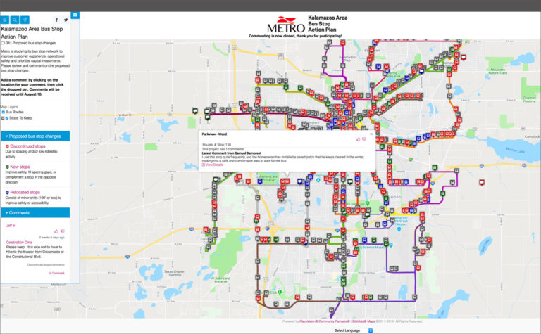 The existing bus stop network was placed on Community Remarks engagement map for the public to post comments at specific locations on the map, respond to existing comments, and voice agreement or disagreement with recommendations. Preliminary recommendations were posted and made available for comment from July 18, 2018 through August 10, 2018. The preliminary recommendations…